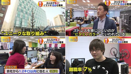 テレビ東京が放送する報道番組「ゆうがたサテライト」にて、【企業(オフィス)のストレス削減策】というテーマのもとピクシブのオフィスが紹介されました。 放送局:テレビ東京 放送番組:ゆうがたサテライト