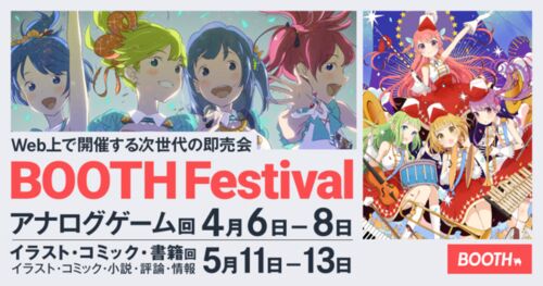 ピクシブ株式会社(代表取締役社長:永田寛哲、本社:東京都渋谷区)は、本年4月と5月の二期間に分けて、Web上で展開するコンテンツ即売会「BOOTH Festival(ブースフェスティバル)」の開催することを決定いたしました。 「BOOTH Festival」とは、様々なク…