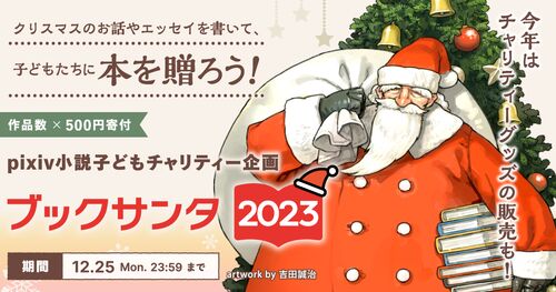 ピクシブ株式会社(本社:東京都渋谷区、代表取締役:國枝 信吾、以下ピクシブ)は、NPO法人チャリティーサンタ(所在地:東京都千代田区、代表理事:清輔 夏輝)が主催する、子どもたちに本を贈る社会貢献プロジェクト「ブックサンタ」に賛同し「pixiv小説…
